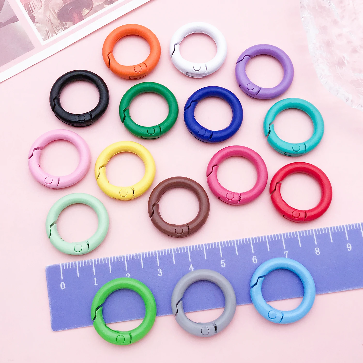 20mm Candy-Colored Spring Clasps, Spring Rings for Keychain Accessories, DIY Findings, Baked Enamel Split Rings, Round Ring